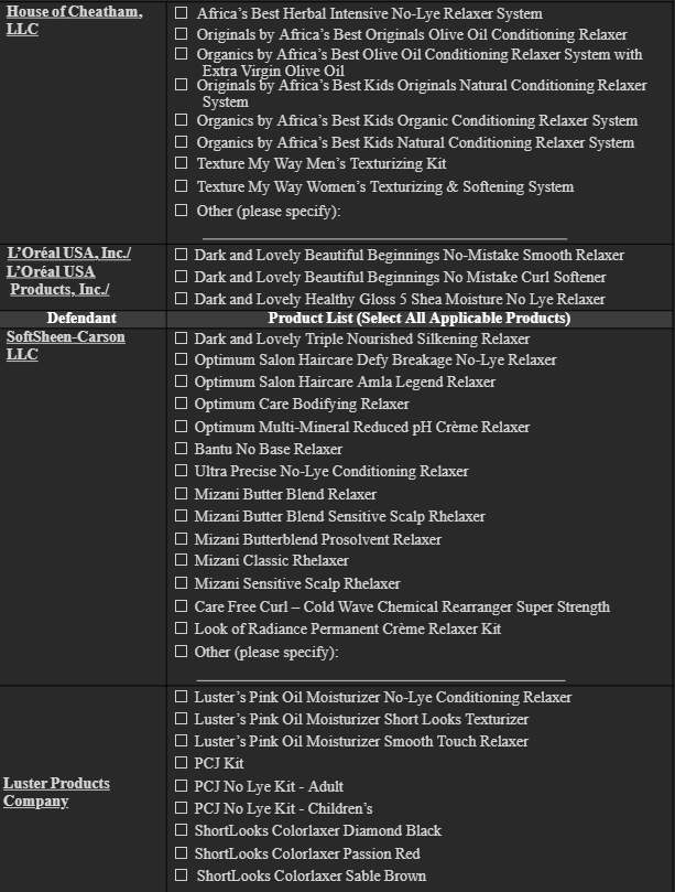 - PC does not already have an attorney for their chemical hair straightener/relaxer case.