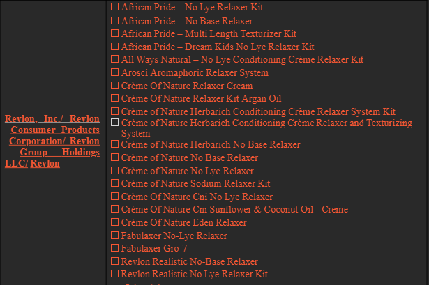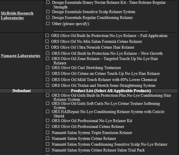 Name of hair straightener and/or hair relaxer products used (to their best of their ability)
